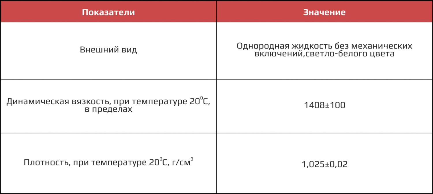 Приведенные значения получены в лабораторных условиях: перемешивание на мешалке в течение 10 сек. при температуре компонентов 25С. С числом оборотов мешалки 2700 в минуту и диаметром диска 40 мм.