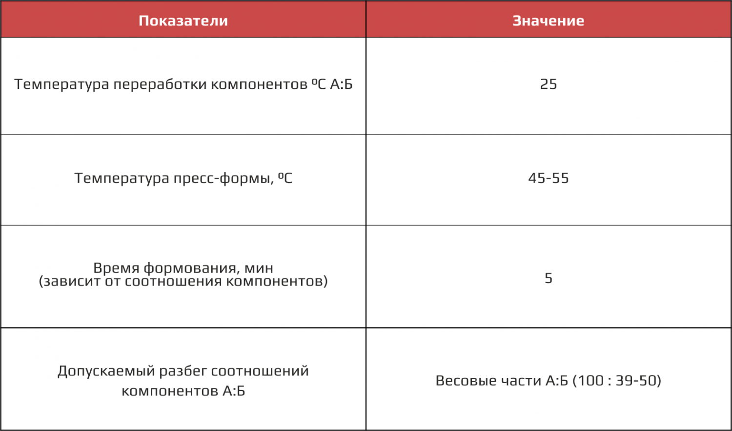 Переработку компонентов осуществляют с помощью заливочных машин низкого и высокого давления.Пресс-форму предварительно обрабатывают антиадгезионной смазкой.Компонент А - перед применением термостатируют до температуры плюс 25С, а затем перемешивают в течение 10-15 мин с помощью лопастной мешалки или путем прокатывания бочки в горизонтальном положении в течение 20-30 мин.Компонент Б - перед применением термостатируют до температуры плюс 25С.Если изоцианатный компонент хранился при температуре ниже плюс 15С, его нужно плавно разогреть до температуры не выше плюс 50С,затем путем прокатывания бочки в горизонтальном положении перемешать продукт до гомогенного (однородного) состояния и только после этого использовать по назначению.