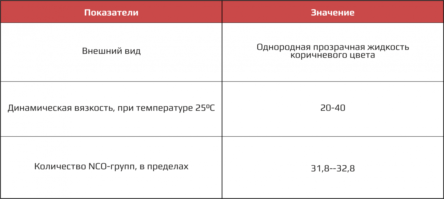2. Основные характеристики - изоцианатный компонент Б